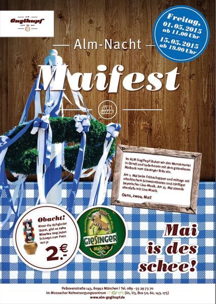 Oiso nix wia nei ins Dirndl oder in d`Lederhosn und auf geht´s zu unserem Alm Maifest.