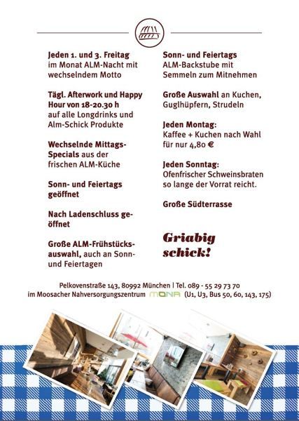 Aber Obacht! Am 1. Mai geht ois scho um 11 Uhr los. Mit Frühschoppen, Weißwurstessen, mittags an ofenfrischen Schweinebraten und dazu a gstandener Maibock vom Giesinger Bräu.