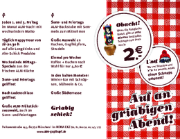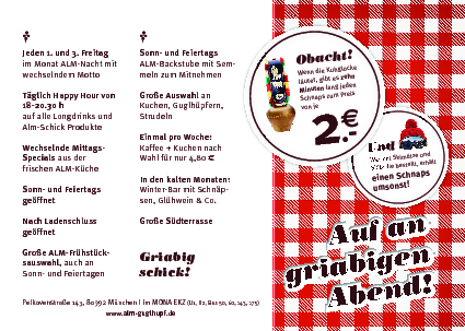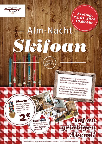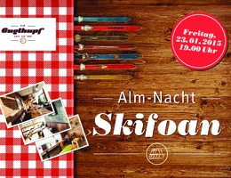 Am Freitag, den 23.1. ist es soweit: unser neues Format Alm-Nacht, welches jeden Monat 2 mal unter einem anderen Motto stattfindet, hat Premiere. Und zwar zum Start unter dem Motto Skifoan. Kommt´s vorbei, denn es erwarten Euch neben fetziger Hüttengaudi und Musik auch tolle Überraschungen.