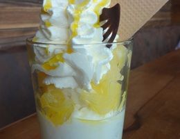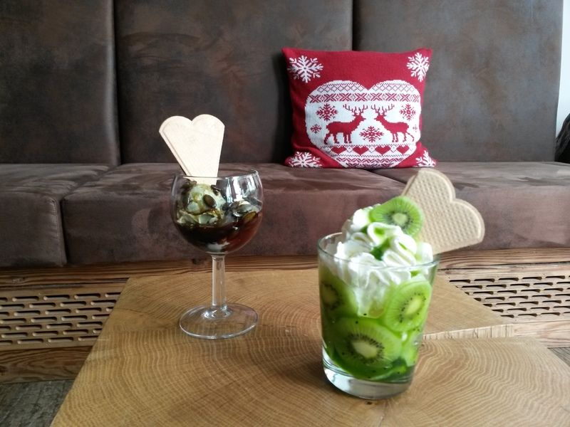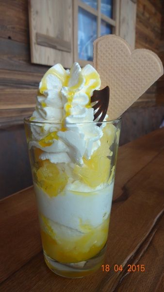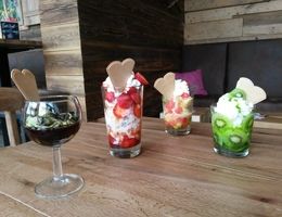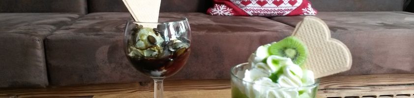 Genießen Sie auf unserer Sonnenterrasse eine Auswahl aus über 50 Sorten hausgemachtem Speiseeis in vielen Variationen: